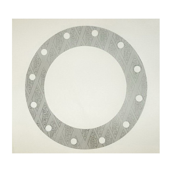 APG Compressed Flange Gasket, Full Face, 12 in Nominal, 12-3/4 in Inside Dia, 19 in Outside Dia, 1/8 in Thickness, 12 Bolt Holes, 1 in, Class: Class 150, C4324 Fiberglass/Aramid Blend, Domestic