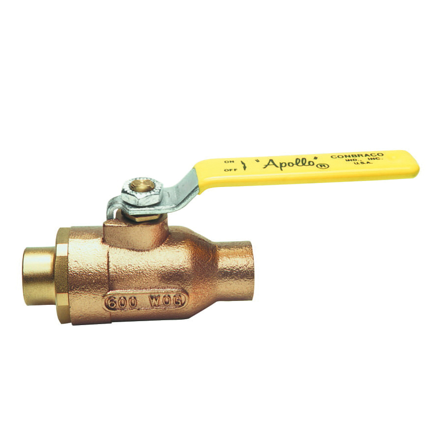 Apollo™ Ball Valve, 2-Piece, Series: 77-200, 1-1/4 in Nominal, Solder, 600 psi CWP, 500 deg F, Full Port, Lever Handle Actuator, Chrome Plated Brass Ball, 5.15 in Inlet to Outlet Length, 2.87 in Top to Inlet Center, Bronze Body, Brass/RPTFE Trim, MPTFE, Domestic
