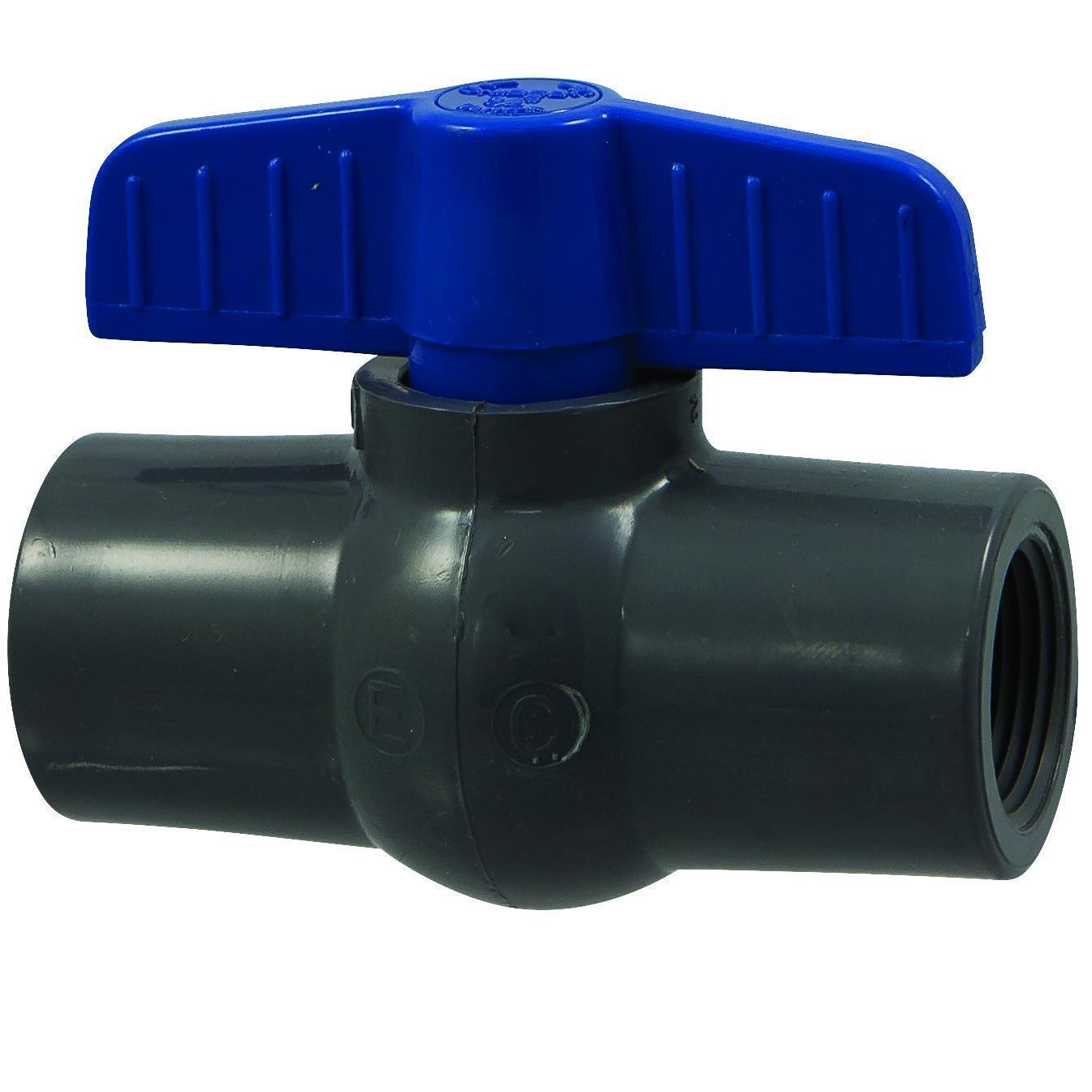 Chemtrol® Economy Ball Valve, Compact, Series: T-45-CE-E, 1/2 in Nominal, Threaded, 150 psi, 113 deg F Service, Media: Water, 0.55 in Orifice, PVC Ball, 3.27 in Inlet to Outlet Length, 1.69 in Top to Inlet Center, PVC Body, PVC Trim, EPDM, Import