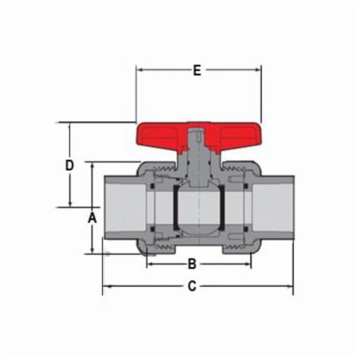 Spears® Ball Valve, Standard, Series: True Union 2000, 4 in Nominal, Socket, 150 psi, 200 deg F, T-Handle Actuator, CPVC Ball, 11-7/8 in Inlet to Outlet Length, 6-3/4 in Top to Inlet Center, CPVC Body, CPVC Stem and PTFE Seat Trim, EPDM, Gray, Domestic