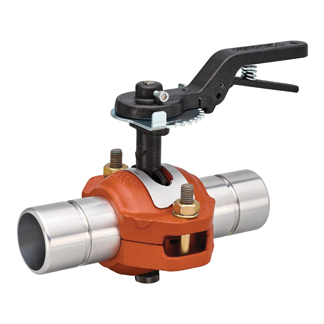 Victaulic® Aquamine™ Butterfly Valve, Type V, Series: 2957 Series, 3 in Nominal, -30 to 194 deg F, Media: Water, 10-Position Lever Lock Handle Actuator, 12.88 in Inlet to Outlet Length, 6.38 in Top to Inlet Center, Ductile Iron Body, 316 Stainless Steel Disc, Polyisoprene Softgoods, Orange Painted, 3-1/2 in OD, Domestic