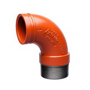 Victaulic® Adapter Elbow, Series: 18 Series, 90 deg Elbow Fitting/Connector, 1-1/2 in Nominal, Grooved x Thread End Style, Ductile Iron, Orange Enamel, 1.9 in OD Dimensions