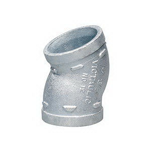 Victaulic® Pipe Elbow, Series: 12 Series, 22-1/2 deg Elbow Fitting/Connector, 4 in Nominal, Grooved End Style, Ductile Iron, Hot Dipped Galvanized, 4-1/2 in OD Dimensions