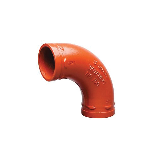 Victaulic® Elbow, Long Radius, Series: 100-3D, Fitting/Connector Type: 90 deg Elbow, 8 in Nominal, EndSeal™ Cut Grooved End Style, SCH 80/XH Schedule, Cast Method of Manufacture, Ductile Iron, Hot Dipped Galvanized, 8-5/8 in OD, Domestic