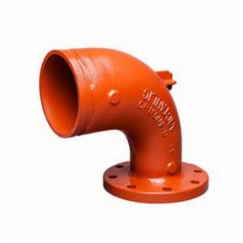 Victaulic® Base Support Reducing Elbow, Series: R-10-F, 90 deg Elbow Fitting/Connector, 6 x 4 in Nominal, Flanged x Groove End Style, Ductile Iron, Orange Enamel