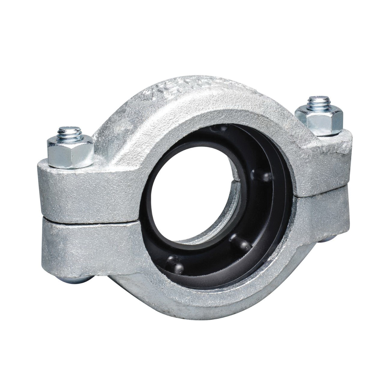 The Style 750 Reducing Coupling permits direct reduction on the piping run. Designed to replace two couplings and a reducing fitting, the Style 750 features a special reducing gasket for pressure responsive sealing. A steel washer which prevents telescoping of the smaller pipe inside the larger pipe during vertical systems assembly is available upon request.