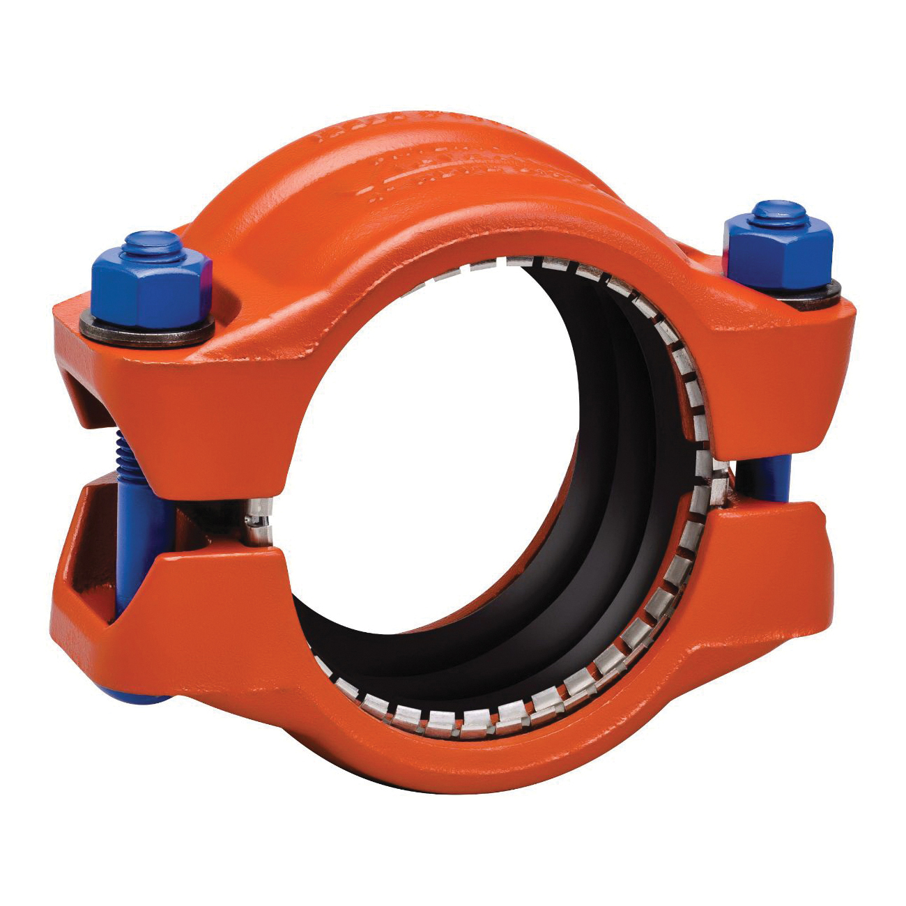 Victaulic® Refuse-To-Fuse™ Transition Coupling, Series: 907, Fitting/Connector Type: Coupling, 3 in Nominal, 3.13 in Thickness, 5/8 in Hex, Ductile Iron, Orange Enamel, 3.5 in OD x 7.63 in W